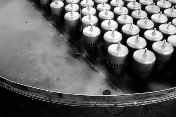 Поддон с пузырьковым колпачком. Поднимающийся пар проходит через стояки в пузырьковый колпачок, который заставляет пар опускаться вниз, а затем пар выходит через щели в жидкость на поддоне.