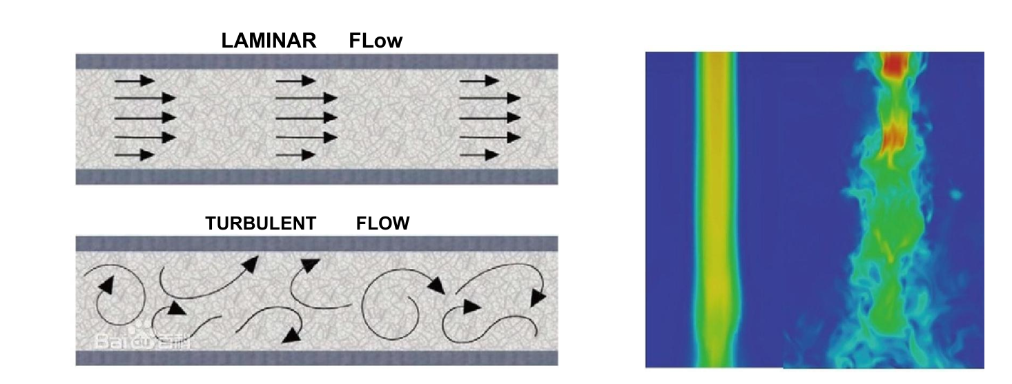 Ламинарное и турбулентное течение - это характеристики движения жидкости. При течении жидкости, если траектории частиц жидкости (в общем случае изменяющиеся с начальными пространственными координатами x, y, z за время t) представляют собой правильные плавные кривые (в простейшем случае - прямые линии), такое движение называется ламинарным. Движение, лишенное этого свойства, называется турбулентным, и оно обладает лучшими эффектами теплопередачи и перемешивания.