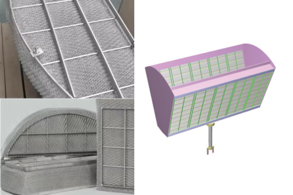 Лопастной туманоуловитель обеспечивает более высокую производительность при работе с газовой нагрузкой. Более того, если лопасти установлены в горизонтальном, а не вертикальном потоке газа, они могут работать с еще более высокими скоростями газа. Он менее эффективен при удалении очень мелких капель по сравнению с сетчатым типом. Стандартная конструкция предназначена для удаления капель размером более 30 мкм, и мы можем предложить специальную конструкцию с высокой эффективностью для удаления капель размером около 15 мкм.
